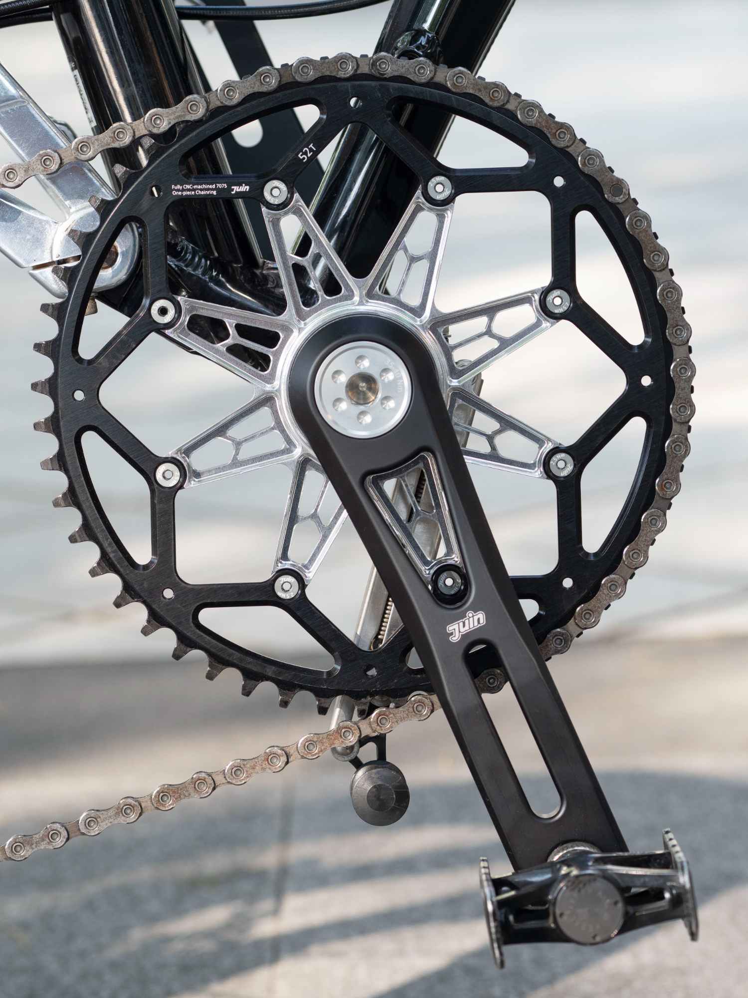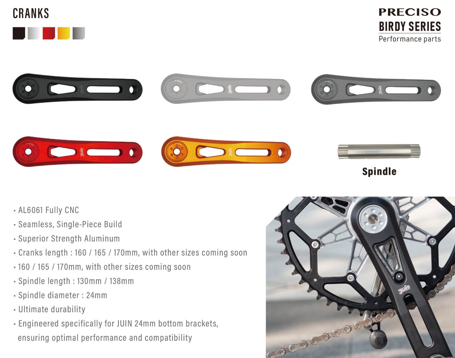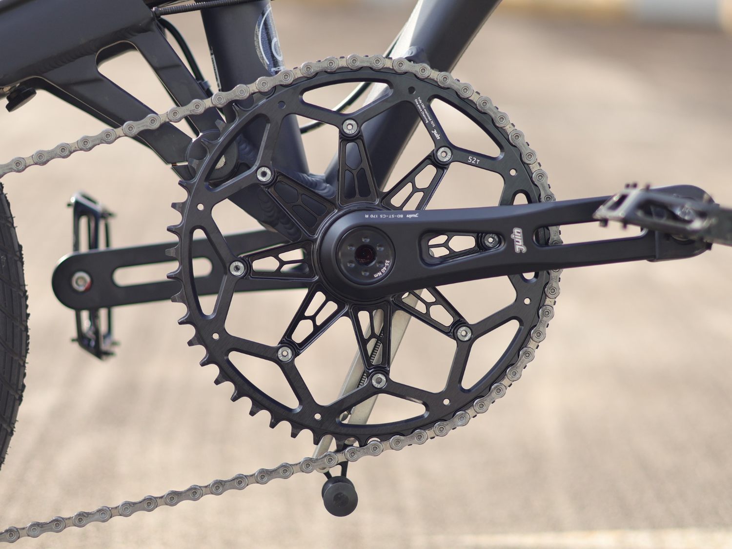 這組大盤的剛性優勢就可以在 BIRDY車上感受到「你的每次踩踏出力都能更純粹更完整地轉為輸出動力」,這組 JuinTECH PRECISO曲柄可說是金屬曲柄裡...跟BIRDY一樣頂級的選擇了。
