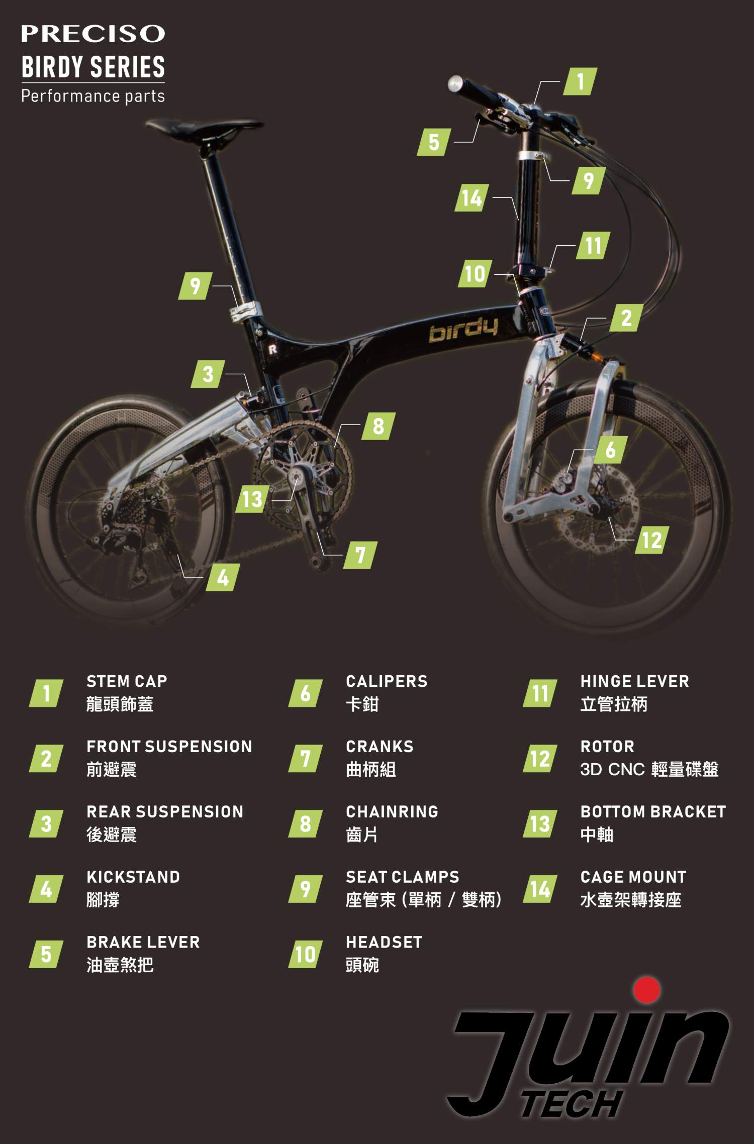 終於!在2025台北自行車展,JuinTECH正式發表了專為 BIRDY量身定制,全新打造的一系列升級套件 - PRECISO 普瑞索|精準系列