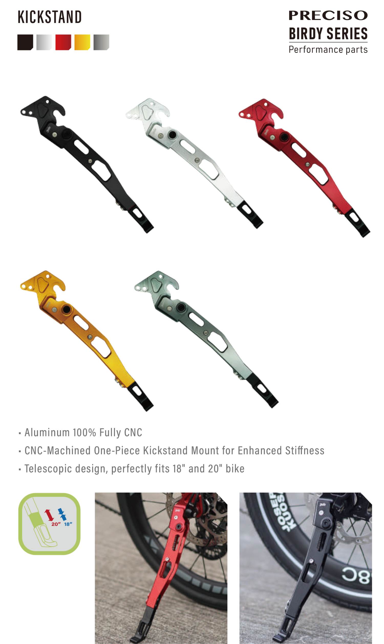未來如果換20"輪組或是換上不同尺寸的外胎,這腳架是可以調整長度的!不用重新再買一次喔!