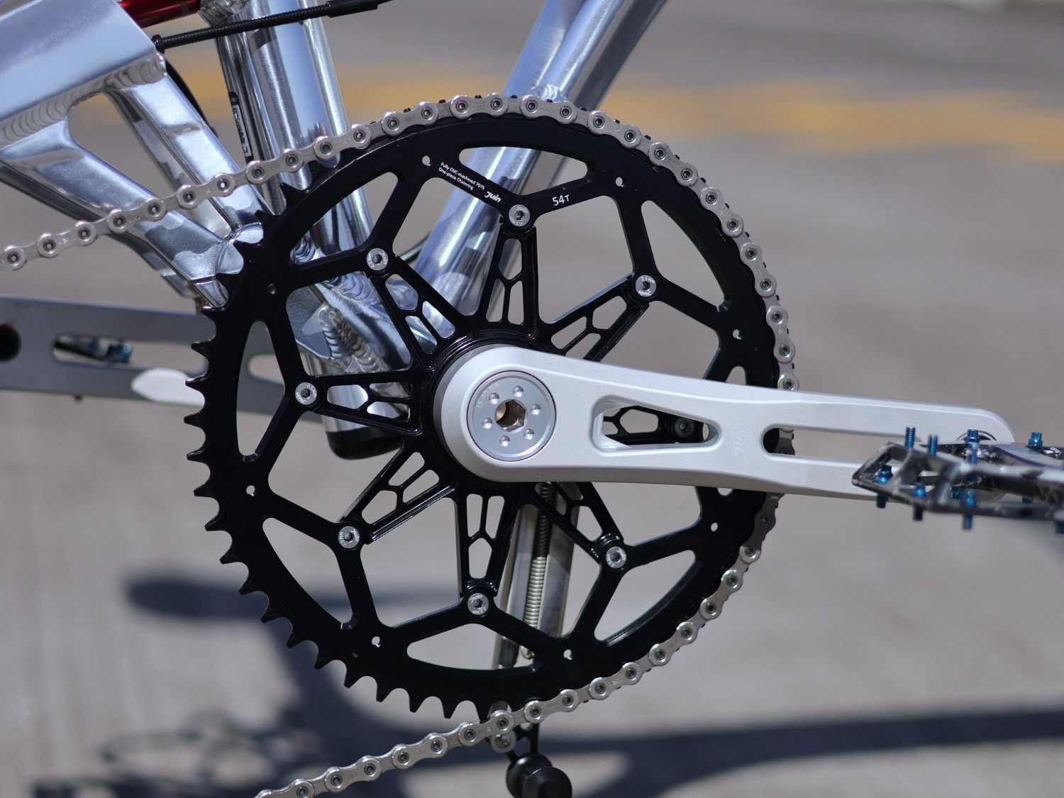 CNC採用間距較小的刀痕設定,雖然製作上更費時,但是可確保在極輕量化切割後,金屬材料能發揮出最佳的剛性,也就是注重剛性重量比的概念,所以最後當你實際上路踩過,就能感受到更紮實傳動輸出。