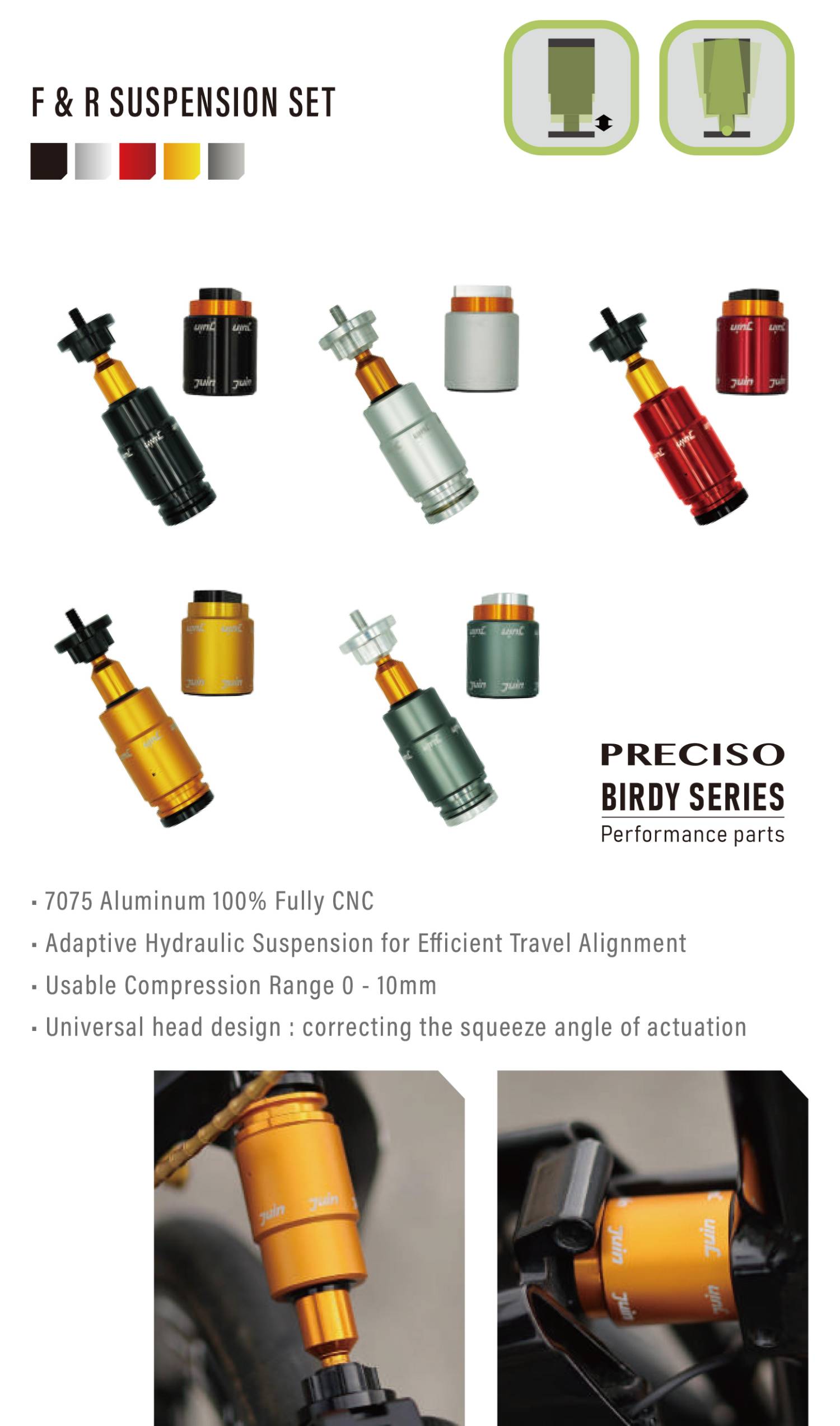JuinTECH前後避震器系統,一樣有提供五個顏色選擇,身為 BIRDY車主的你...這個避震器不試試真的是可惜了這輛好車!