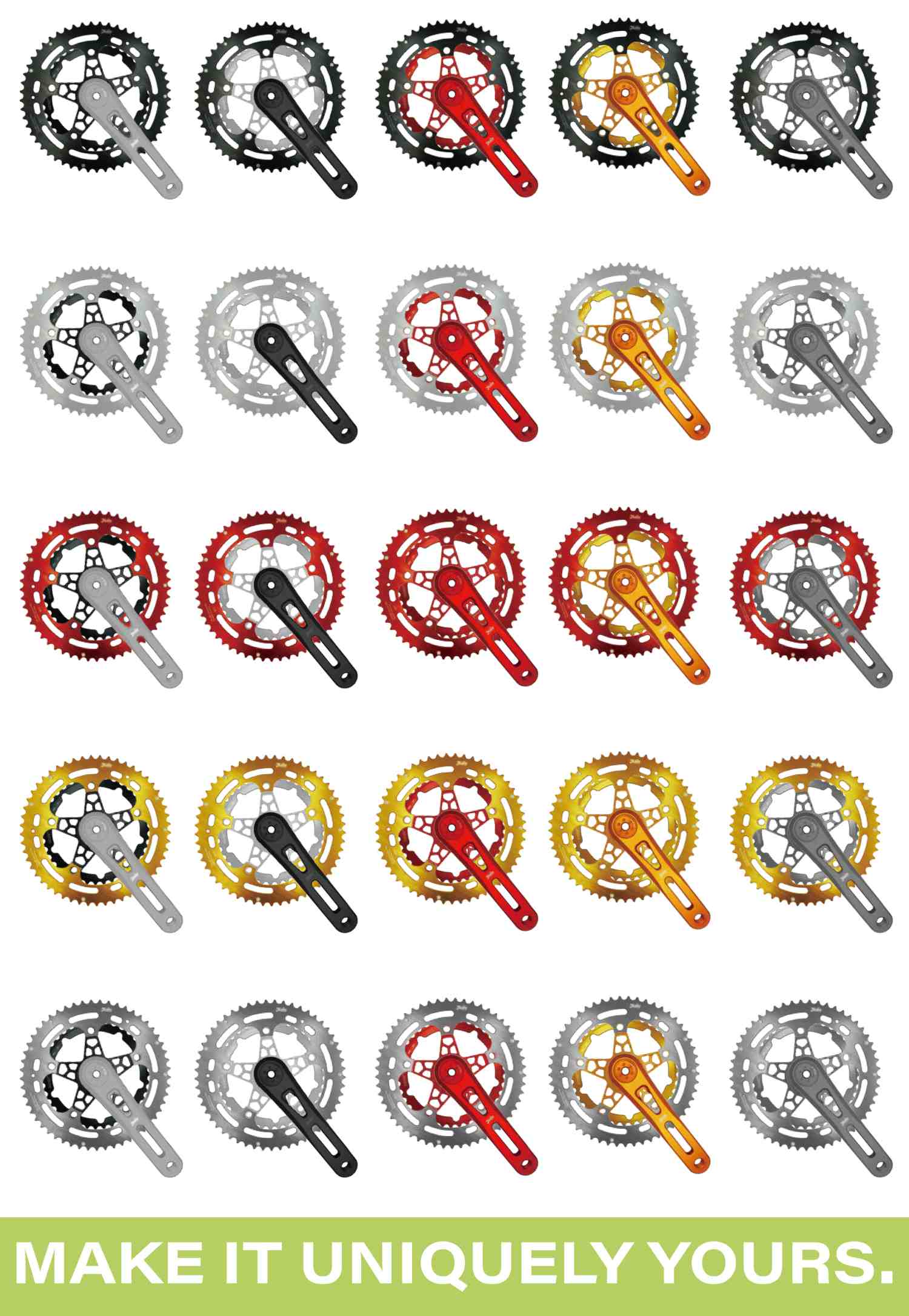 上市首波就提供 A.曲柄/ B.爪盤/ C.齒片 三個部位都有五種顏色,可讓你搭出125種不同配色組合喔!