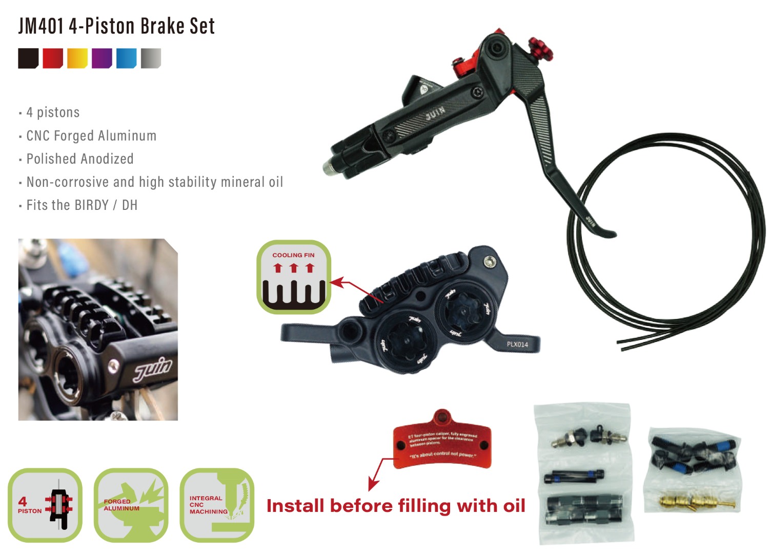 現在你能換上煞車效能更好更穩定,而且有顏色選擇的 JuinTECH煞車系統,尤其是那些山裡來霧裡去的車友...必改!不過因為這篇的主角是 BIRDY,公路車領域的事情我們就不展開來說