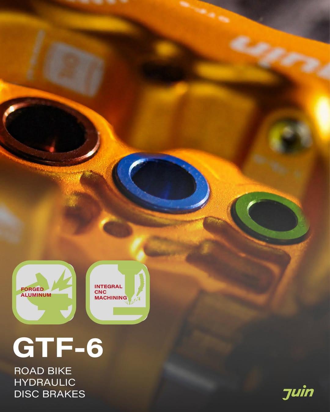 隨著品牌發展推進,JuinTECH從最早的雙活塞 R1/ F1卡鉗,接著推出了四活塞的GTP4與六活塞的GTF6(下圖左),還有加大活塞的F1-S型號(下圖右)