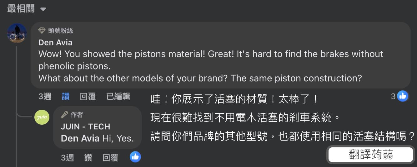 如今 JuinTECH在海外已是小有名氣的台灣公司...從他們公司的粉絲專頁就可見一斑,你會發現貼文留言絕大部分都非台灣車友 XD