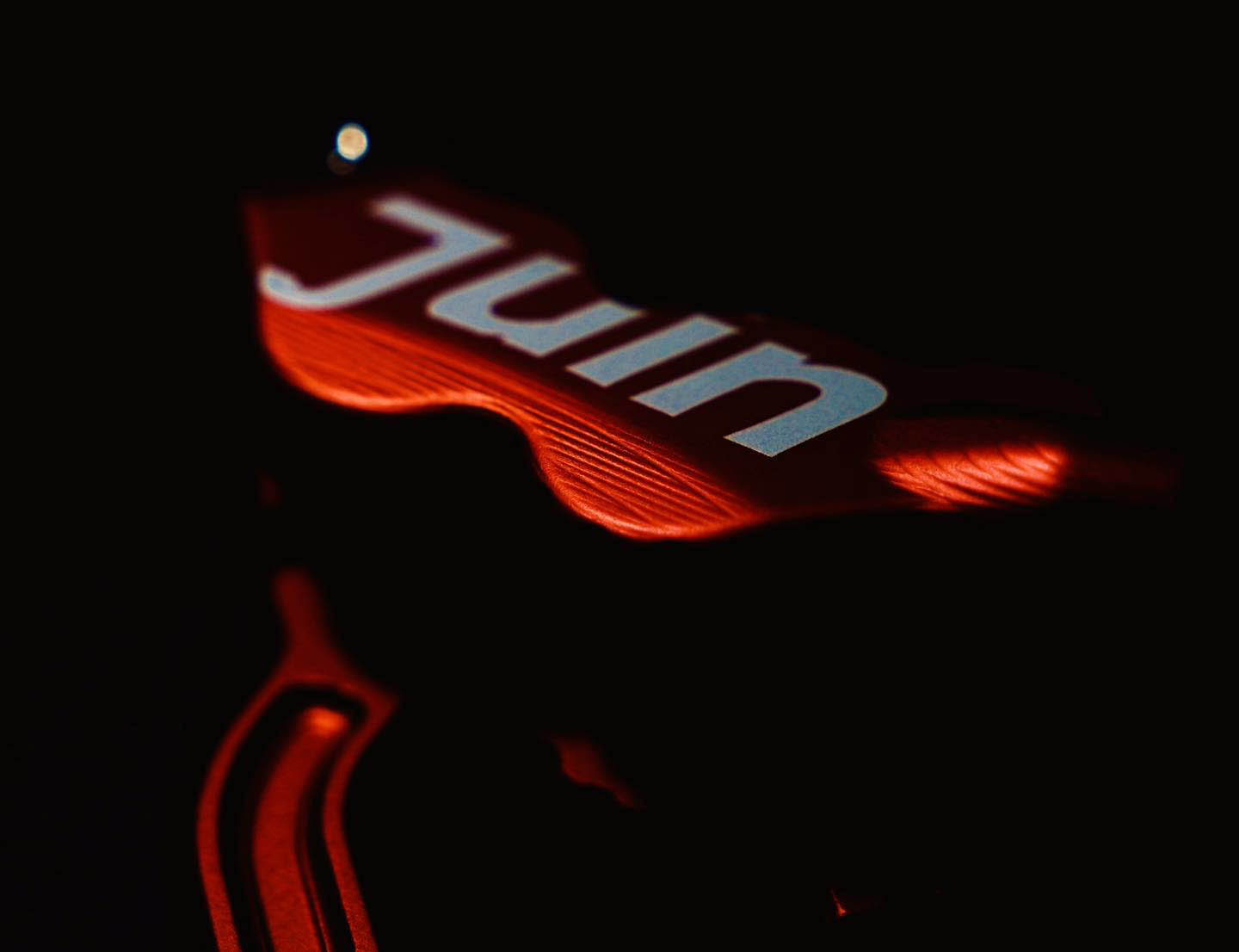 從正面看煞把上的 Juin,就會反過來變成「 U!NL: Unleash! Next Level 」這段也是品牌精神之一的 Slogan喔!