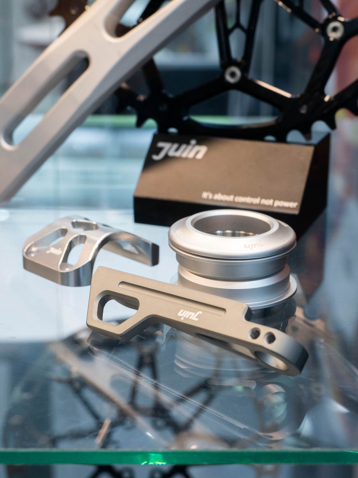JuinTECH為金屬加工專精的品牌,所以你在現場能看到滿滿的鋁合金零件!這家技術本格派的台灣公司,從研發設計到製作組裝有99%都在自己的工廠內完成,產線品質相對能完整掌控