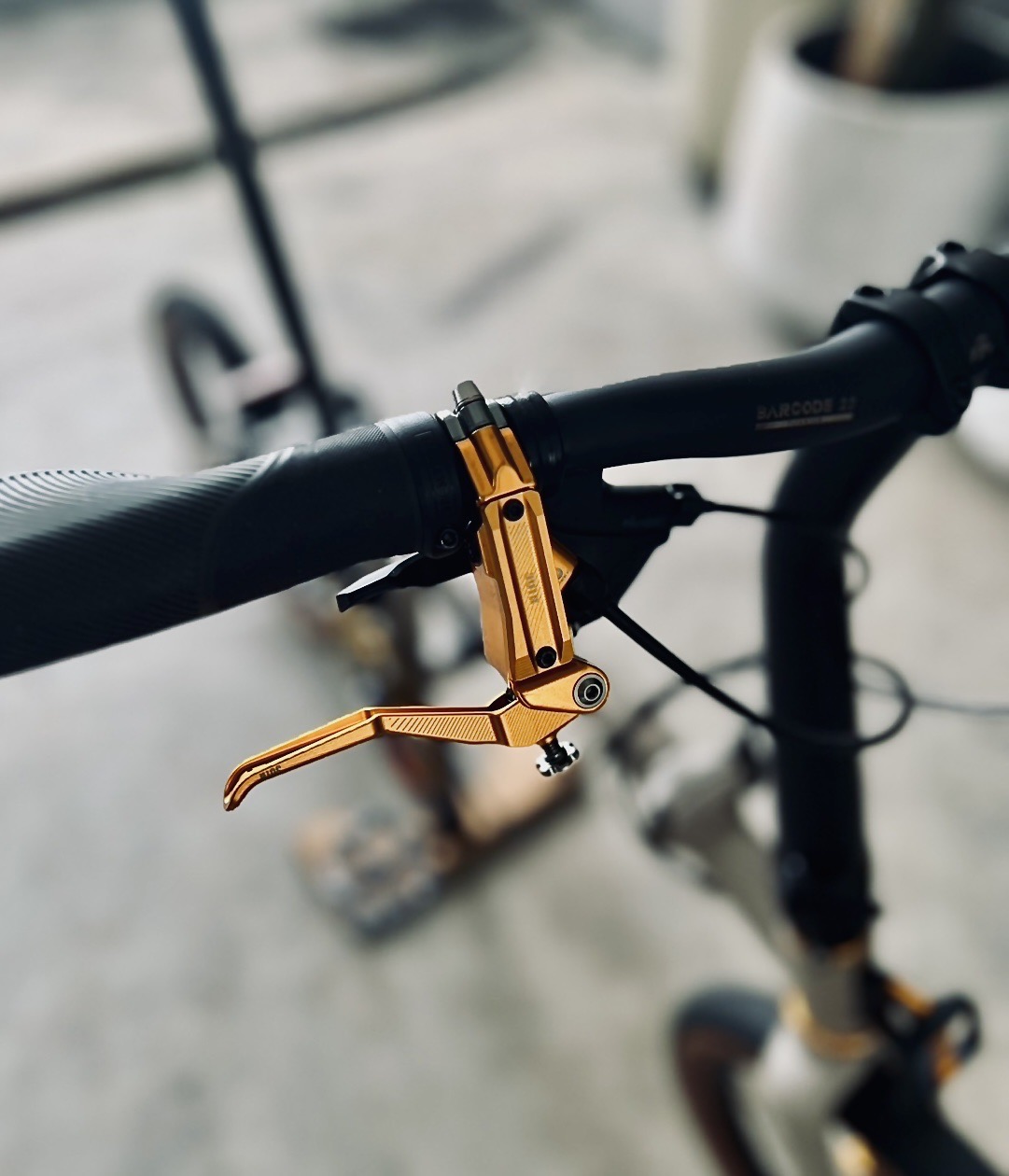 因為採用FM卡鉗規格,就有更多的升級選擇!下圖這是 brompton G Line的後三角,而車上那帥氣的 JuinTECH金色卡鉗與碟盤,這都是發燒車友們的升級傑作